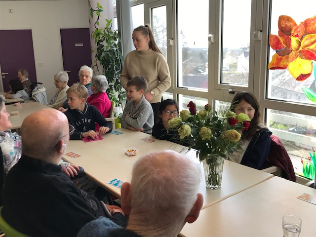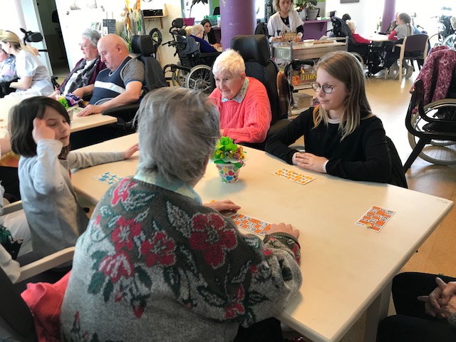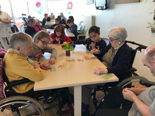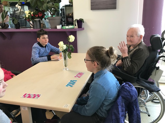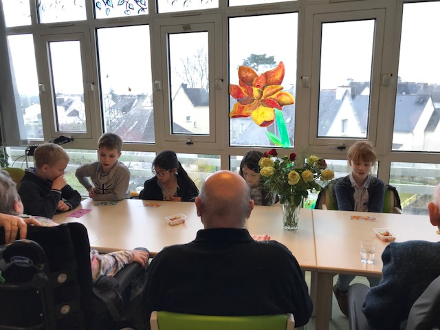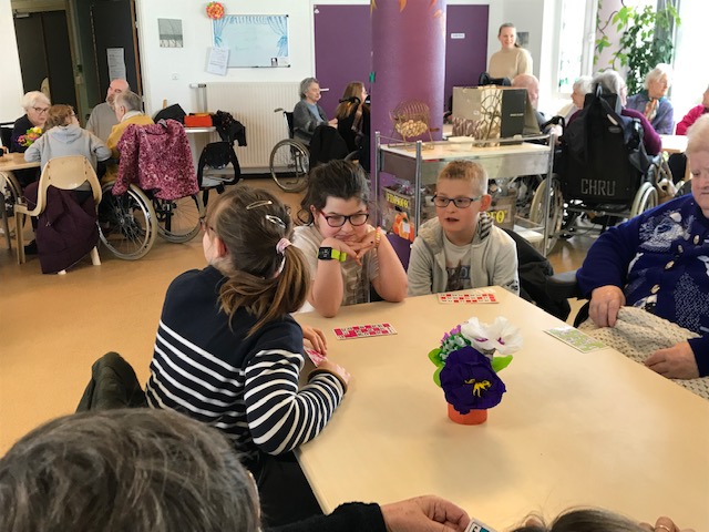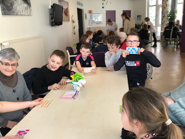 Nous avons joué au loto avec les personnes âgées de la maison de retraite de Keravel. Nous étions en binôme élève-résident. Un élève gagnant recevait des bonbons, un résident avait une peluche. Nous avons passé un agréable moment avant de prendre le goûter. Certains résidents ont offert leur lot à quelques élèves.