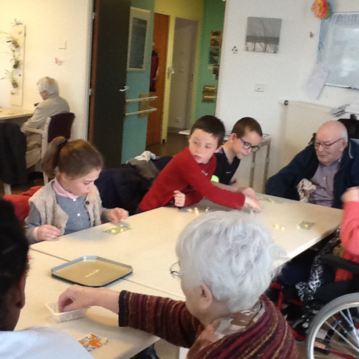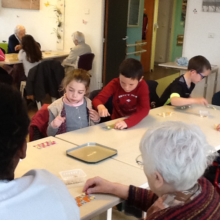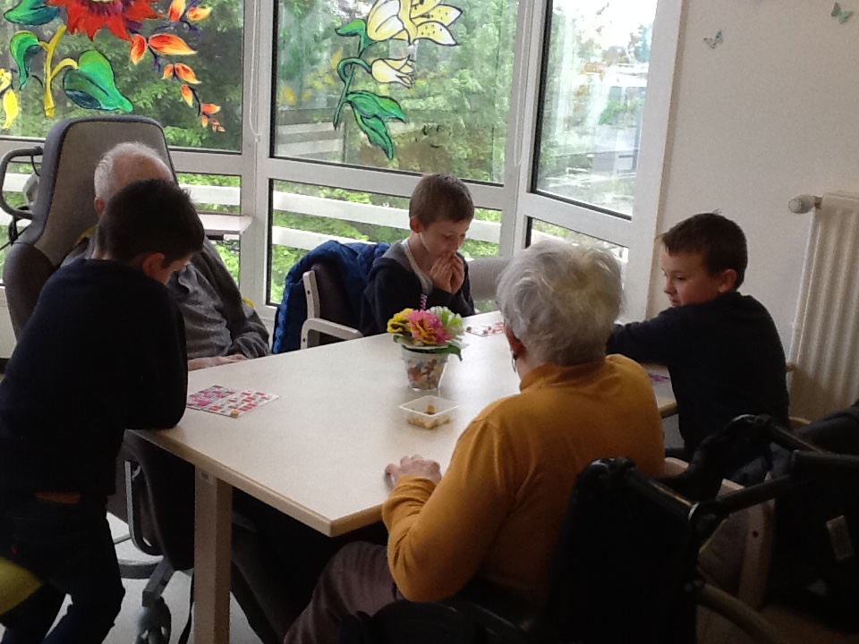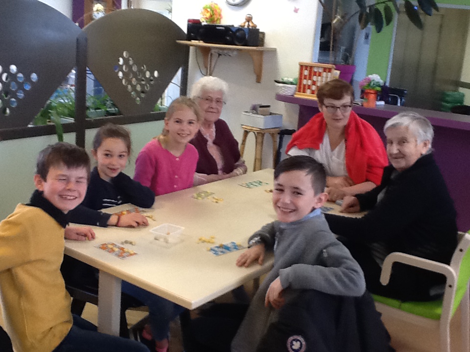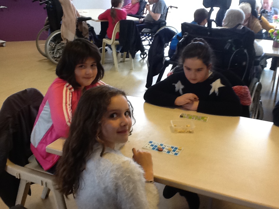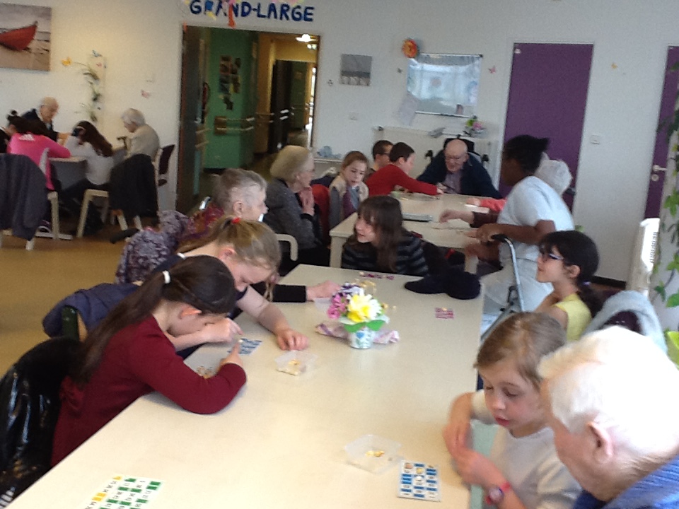Le vendredi 10 mai nous sommes allés jouer au loto avec les résidents de la maison de retraite de Keravel. Nous avons passé un bon moment en compagnie des aînés. Nous aidions les personnes mal-entendantes ou celles qui avaient des problèmes moteurs à placer les pionts sur leur carte. Puis nous avons partagé le goûter avec elles. La veille Mme Sella, aide-soignante était venue en classe nous donner des informations sur la personne âgée et notamment sur la maladie  d'Alzeimer afin que nous soyons moins impressionnés.